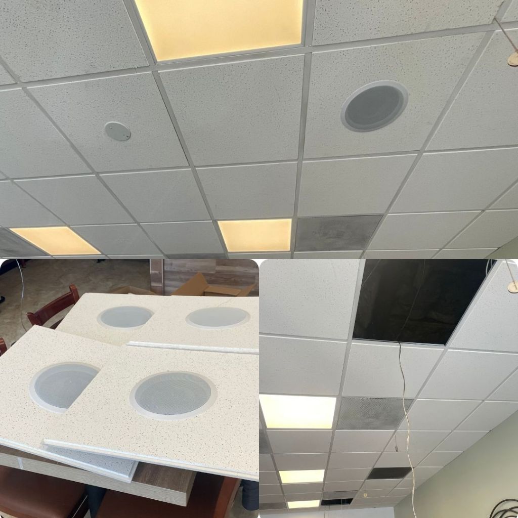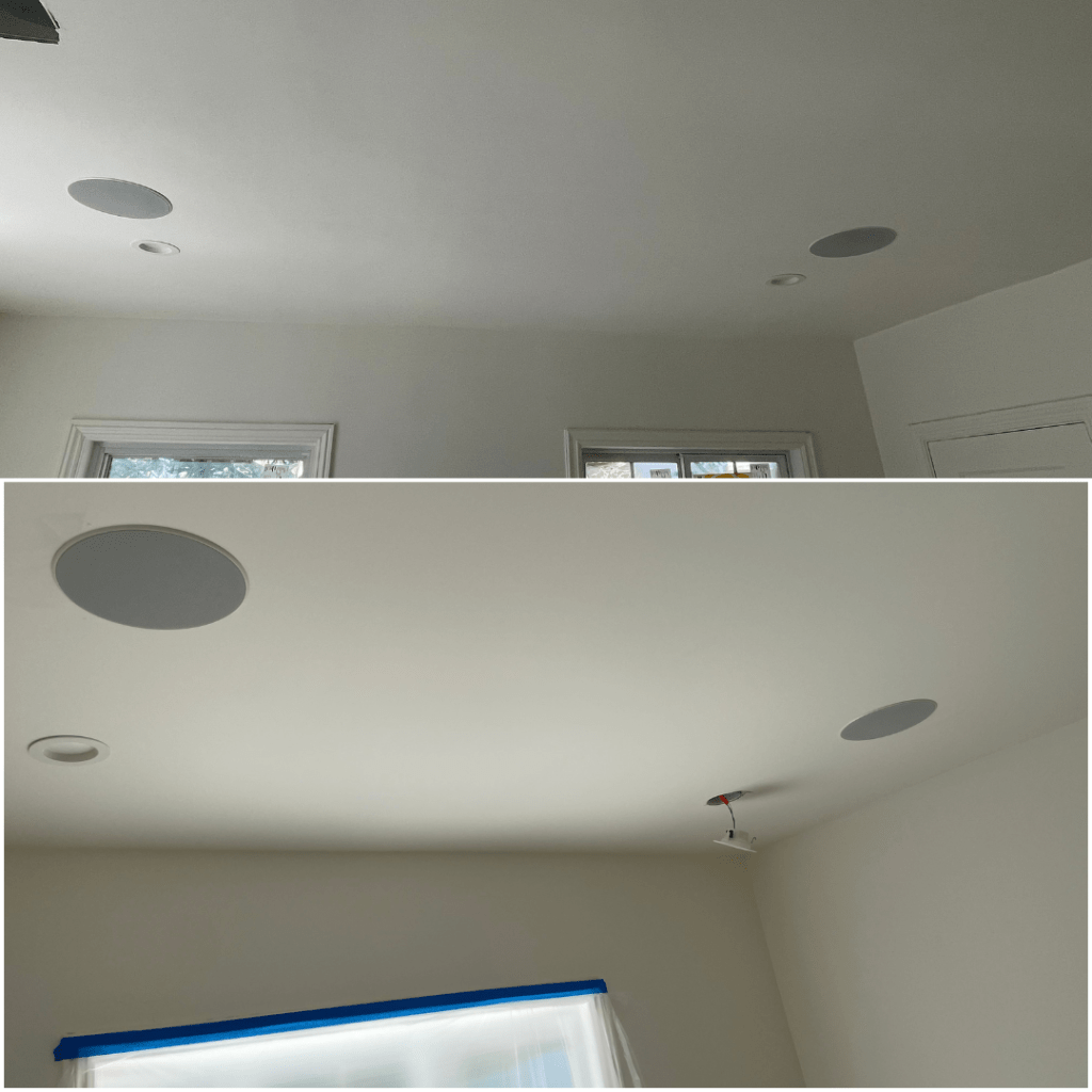 Installation and wiring of speakers, connection of wired audio controller amplifier, and complete setup and calibration of a multi-room audio system.